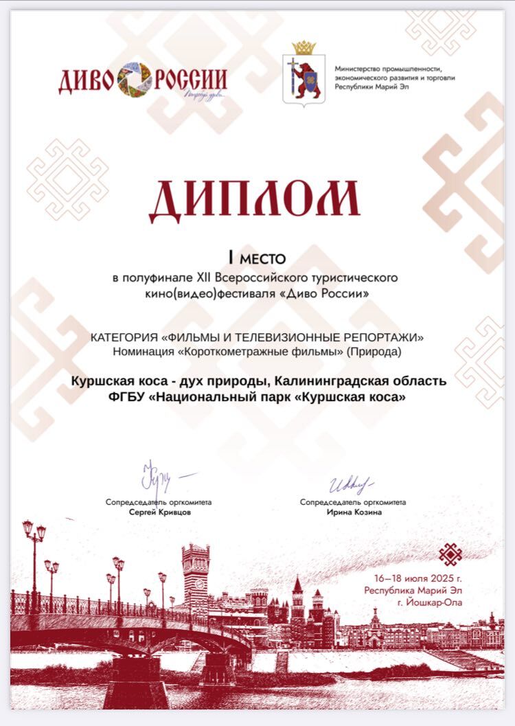 Фильм «Куршская коса — дух природы» занял 1 место в номинации «Короткометражные фильмы» (Природа). В центре этой истории — по-настоящему уникальное место и люди, преданные своему делу.